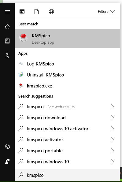 This can be done by typing "kmspico" in the start menu and opening "KMSpico" as shown in the image below.